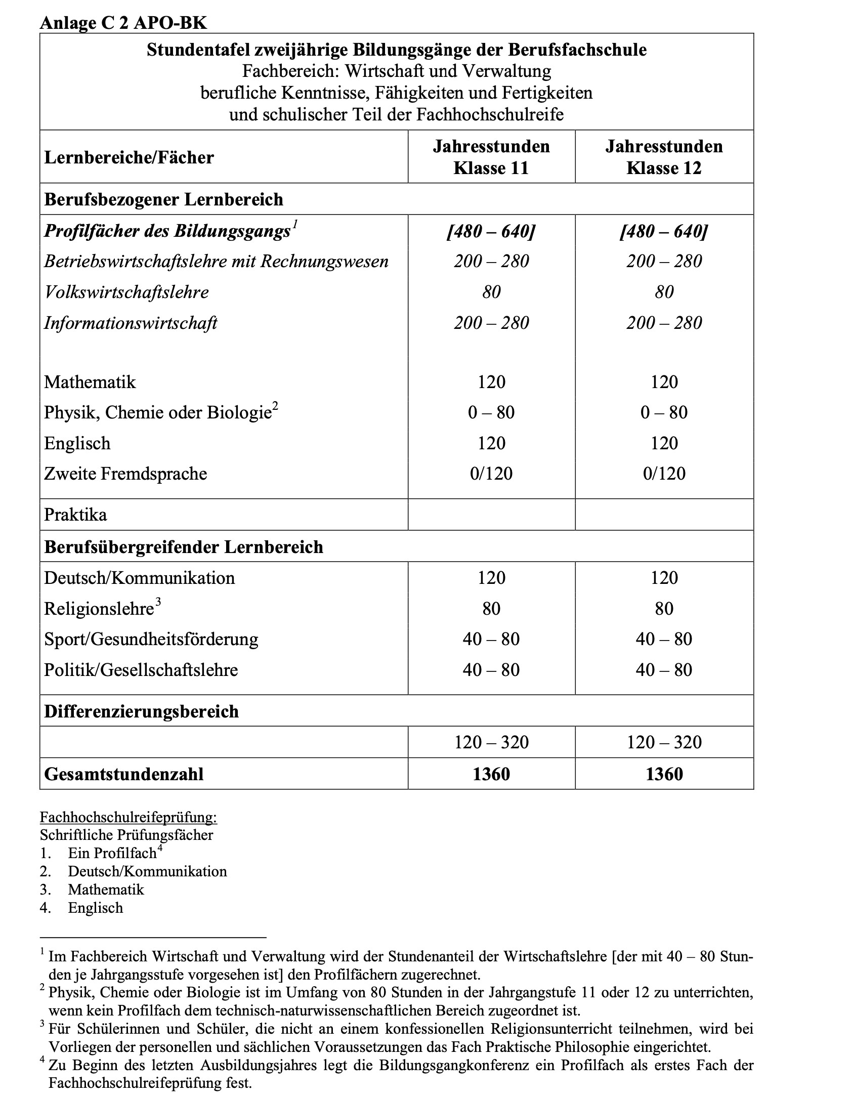 Stundentafel