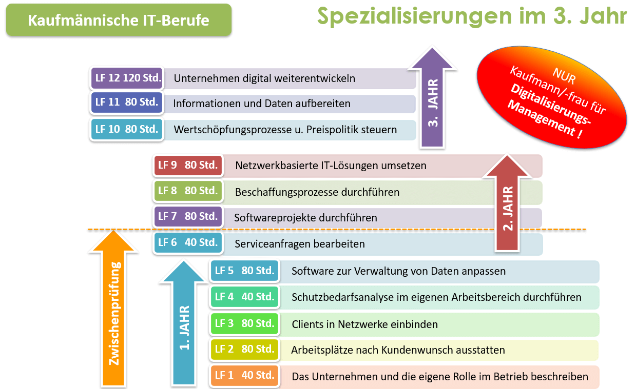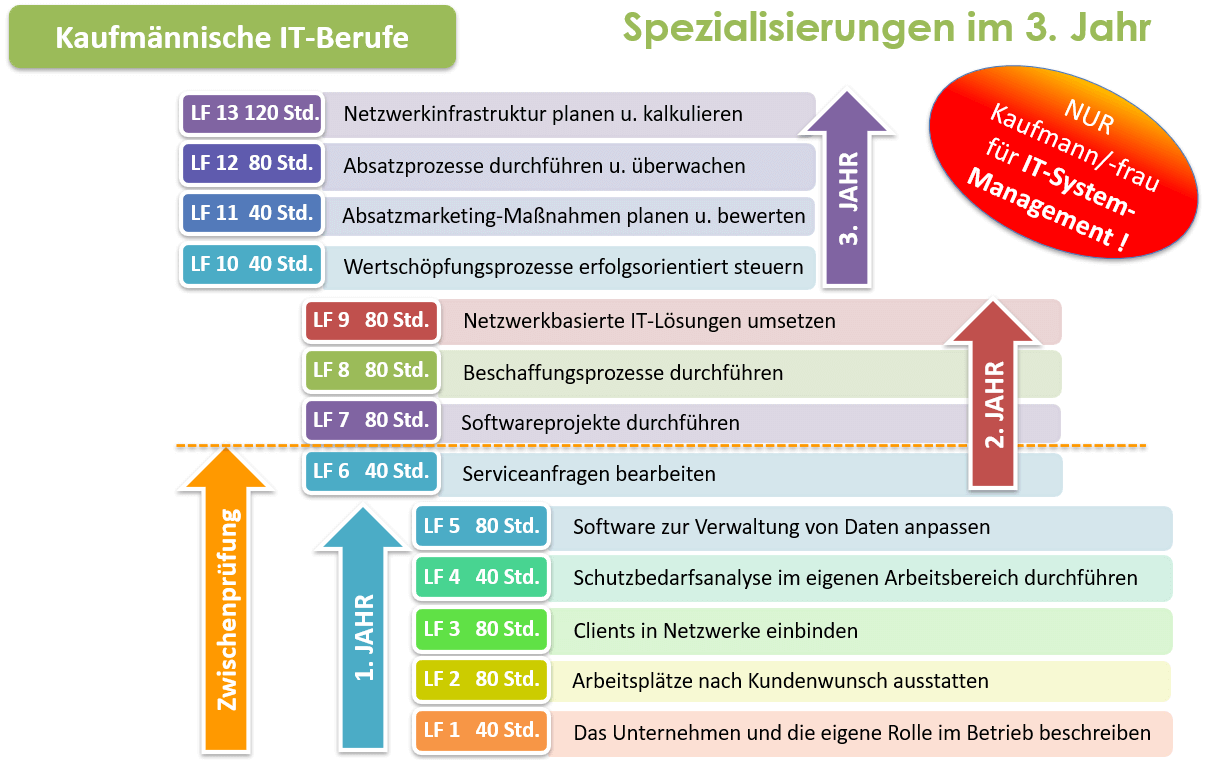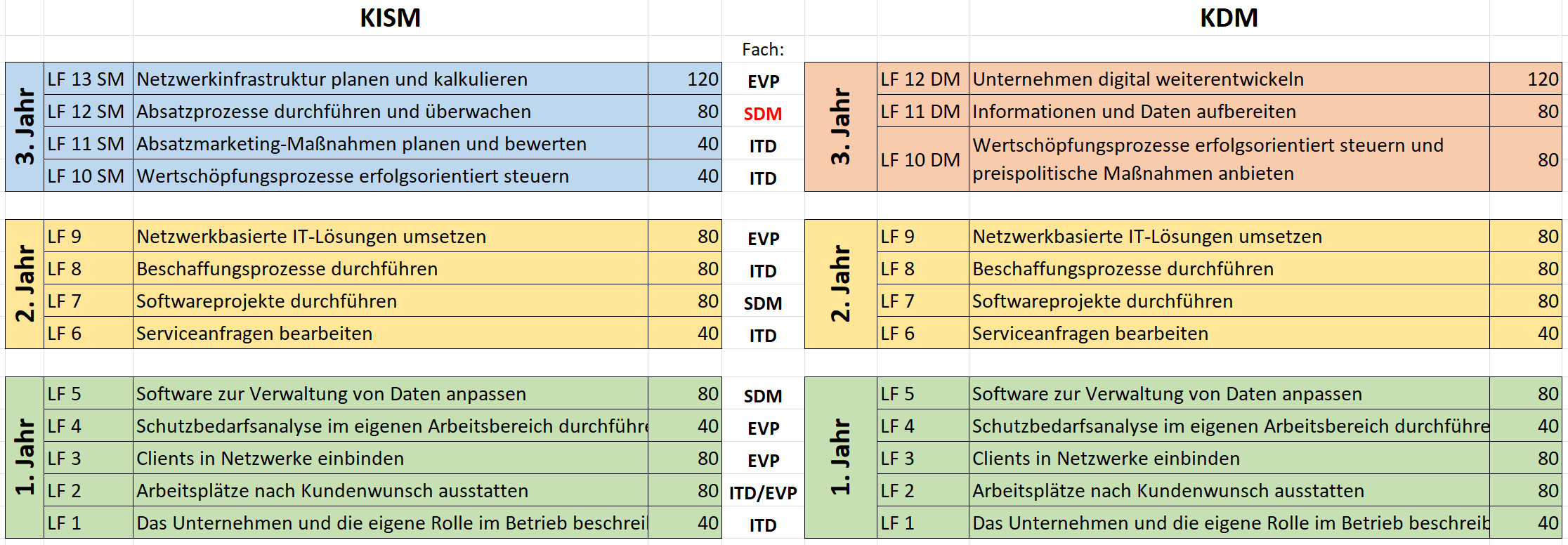 Lernfelder je Berufsbild: Gleiche Inhalte in der Unter- und Mittelstufe. Differenzierung in der Oberstufe.