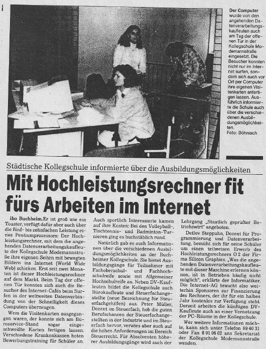 Die Internet AGs begannen Webseiten für Unternehmen zu programmieren und mit Hilfe der eingegangenen Spenden konnte somit eine ISDN-Standleitung für das Internet angemietet werden. Das EGB konnte dadurch als eine der ersten Schulen weltweit einen eigenen Webserver im eigenen Hause betreiben.