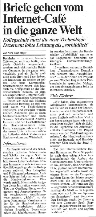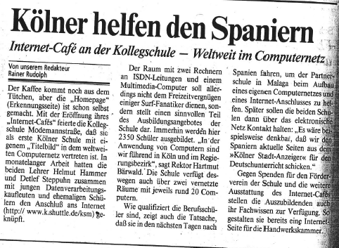 In den Jahren 1998 bis 2006 vernetzen unsere EScouts (Schüler der Internet-AGs) in Zusammenarbeit mit den Verein Mülheim-Online benachbarte Schulen in Köln (Anlage10).